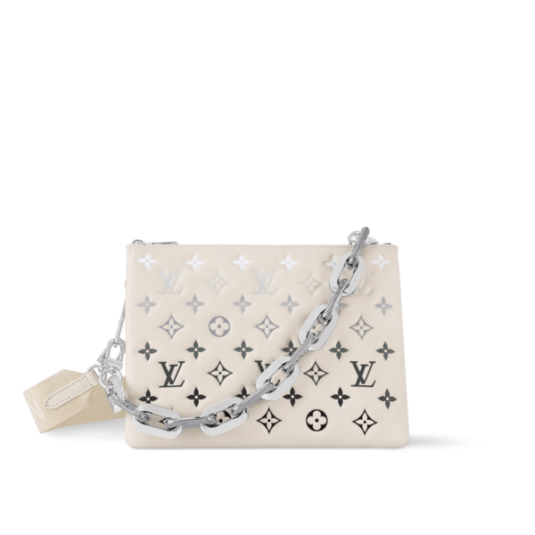 The LV Ski collection offers this brand new edition of the Coussin PM, ready for mountain getaways and beyond. Crafted from lamb leather, it is embossed with the House’s signature Monogram in a unique gradient finish and embellished with a bi-galvanized chain. A key shape for the season, it is sized to fit the essentials,...