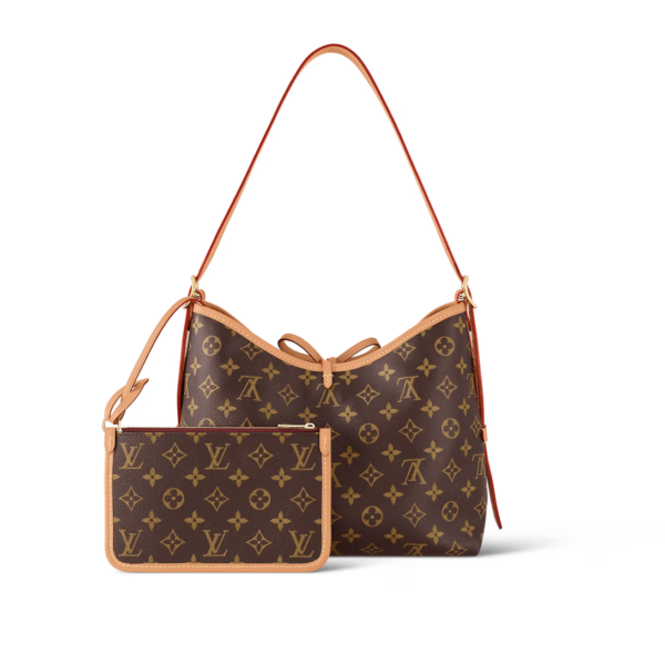 Combining allure with body-friendly design, the CarryAll PM handbag in Monogram canvas with natural leather trim is a go-everywhere city bag. Great storage capacity and a smartly designed interior, with two large inside pockets, makes it practical. A detachable zipped pouch, also in Monogram canvas, is attached to the bag by a leather strap. 11.4...