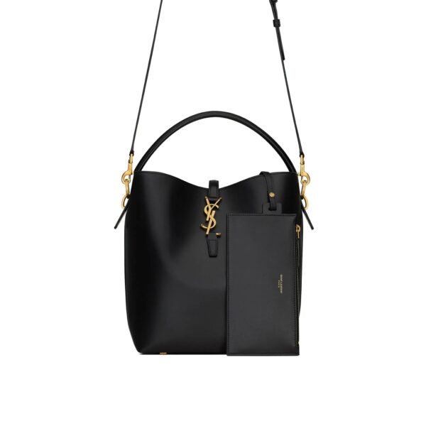BUCKET BAG FEATURING THE CASSANDRE HOOK CLOSURE, TOP HANDLE AND AN ADJUSTABLE AND DETACHABLE SHOULDER STRAP. SUEDE LINING LIGHT BRONZE-TONED METAL HARDWARE CASSANDRE HOOK CLOSURE ONE ZIPPED POUCH FOUR METAL FEET DIMENSIONS: 20 X 25 X 16 CM HANDLE DROP: 9 CM STRAP DROP: 40 CM