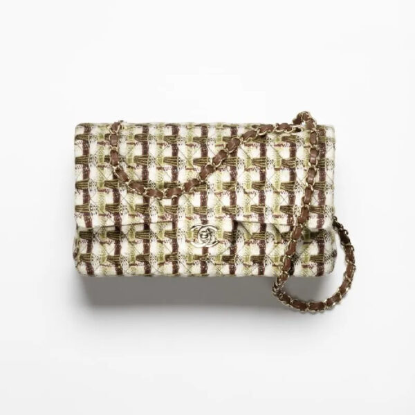 Wool Tweed & Gold-Tone MetalEcru, khaki & brown DIMENSIONS 6 × 9.9 × 2.5 in 15.2 x 25 x 6.3 cm