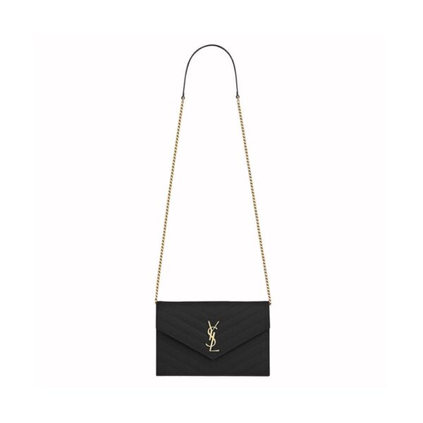 Saint Laurent Envelope Chain Wallet In Grain De Poudre Embossed