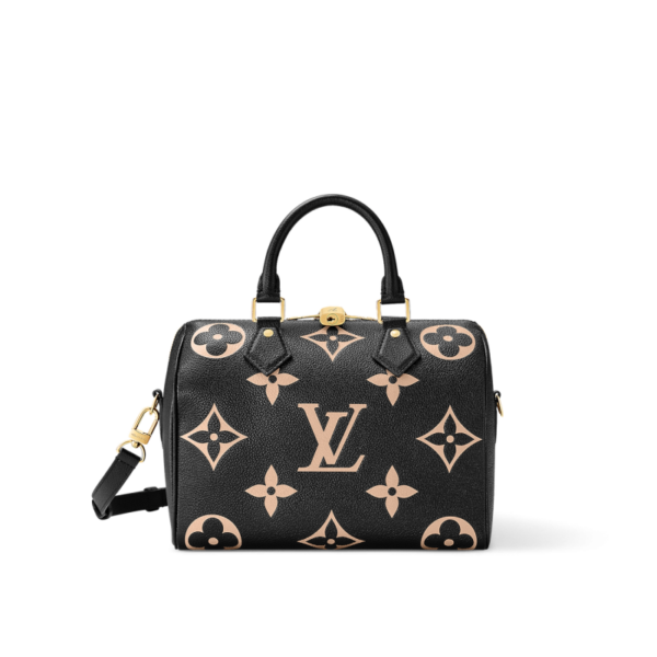 The compact Speedy Bandoulière 25 handbag is made from black Monogram Empreinte leather with the embossed Oversized Monogram pattern in beige. This sophisticated handbag was inspired by the House’s “Express” bag from 1930. Finished with gold-color hardware, the interior is lined in red. A detachable and adjustable shoulder strap, in addition to the top handles,...