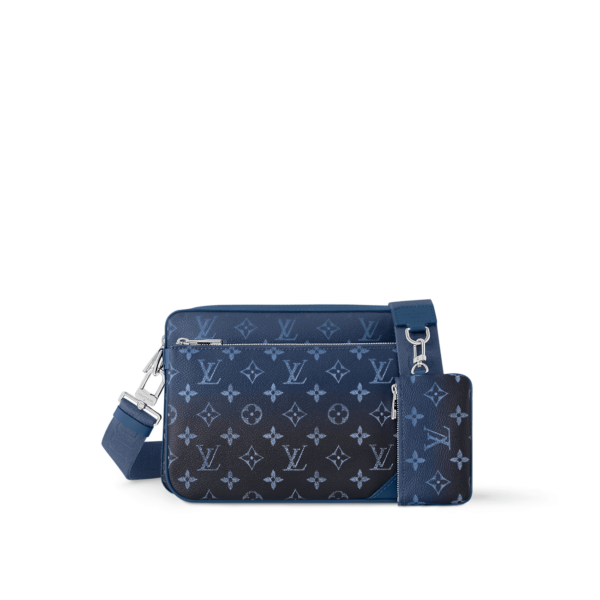 Fashioned from Monogram Gradient canvas, the modular Trio Messenger intrigues with its vanishing Monogram print: a subtle gradient treatment in which the Monogram goes from vibrant to more and more faded. The Trio features a front pocket, that’s actually a detachable pouch, and a coin purse attached to a D-ring on the removable strap. 9.8...