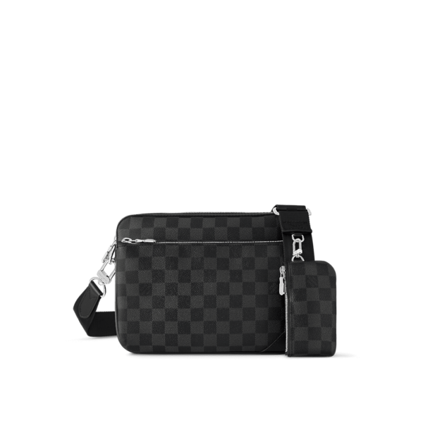 Louis Vuitton’s classic Damier Graphite canvas gives this new version of the Trio Messenger a timeless signature. The main pouch is supplemented by a detachable zipped pocket plus a separate coin purse that fits onto the strap, perfect for carrying change and contactless payment cards. An elegant everyday bag that combines modern functionality with a...