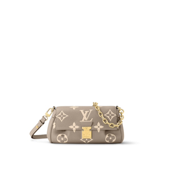 The Favorite is a fashionable bag made from supple grained leather with an oversized embossed Monogram pattern. Feminine pleats bring a couture touch while the gold-color magnetic lock evokes the Maison’s heritage. A removable and adjustable strap enables short-shoulder carry or cross-body wear, while a bold detachable gold-color chain is a glamorous look for evening....