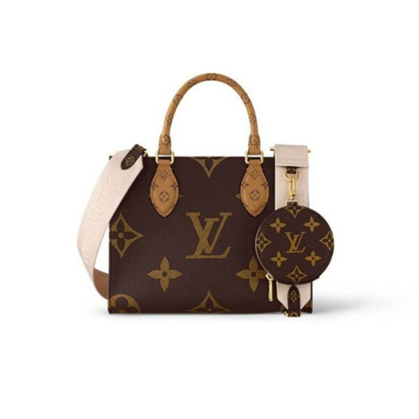 This medium OnTheGo tote is crafted from Monogram Tiles canvas, featuring a watercolor-inspired Monogram print and the LV Circle logo at the center. The two top handles, hidden shoulder strap, and four riveted corner closures are all made from cowhide. This spacious bag easily fits a laptop and other essentials. 35 x 27 x 14...