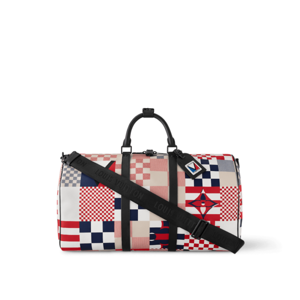Part of the America’s Cup collection, this eye-catching Keepall Bandoulière 50 bag is made from Damier Flags canvas. The Damier Flags print evokes the tradition of flag signaling in the maritime world. Imagined as a patchwork of different flags, the Damier pattern is created through a checkered print, playing with scale and color. 50 x...