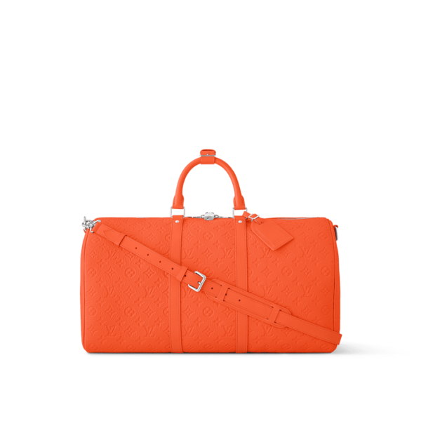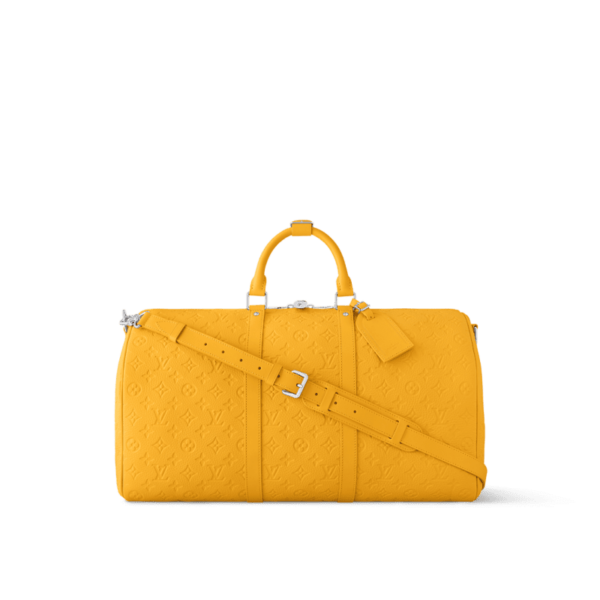 Fashioned from bright-colored Taurillon leather, with the Monogram discreetly embossed into the cowhide, this Keepall Bandouliere 50 travel bag is part of the Travel Rainbow capsule. Lightweight and comfortable to carry, thanks to its removable and adjustable strap, it features an inside zipped pocket in a matching colorway. 50 x 29 x 23 cm (length x...