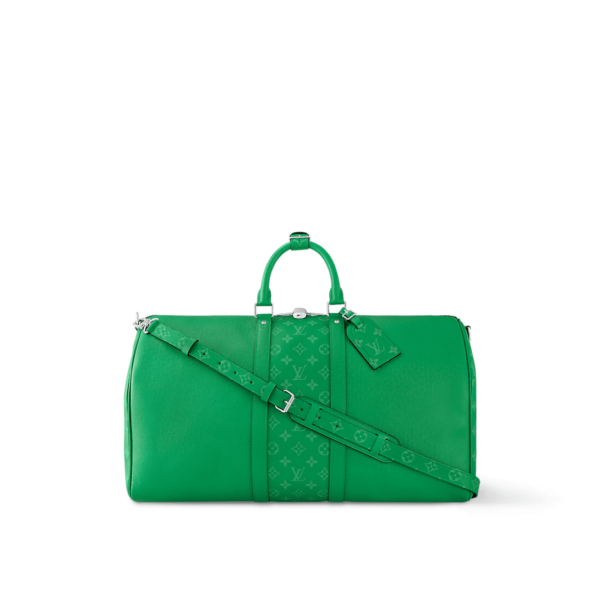 Joining the Taigarama line for 2024, this new version of the classic Keepall Bandoulière features a high-impact look inspired by the vibrant colors of summer. Timeless Monogram canvas is combined with the House’s exclusive Taiga leather in a bright, fresh shade of green. A practical, user-friendly travel bag that emanates bold signature style. 19.68 x...