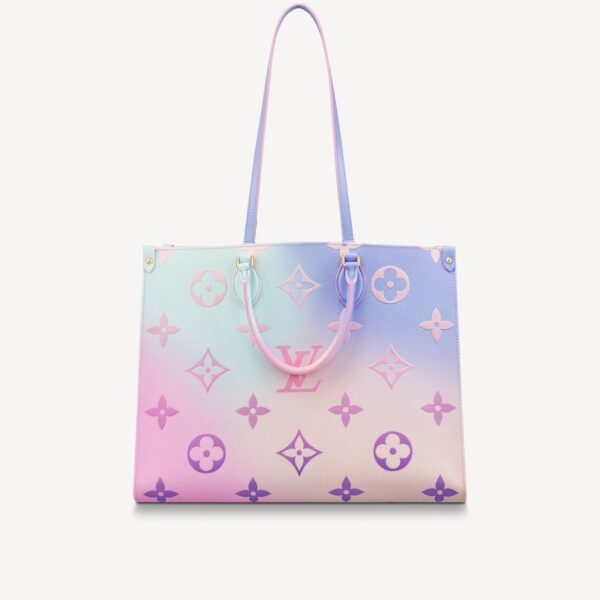 Size: 41*34*19 cm Sunrise Pastel Monogram coated canvas Printed sari lining Gold-color hardware Toron top handles Removable and adjustable jacquard strap Removable round coin purse Large inside flat zipped pocket Strap: Removable, adjustable Packing: Box,Invoice,Cards and Dustbag.