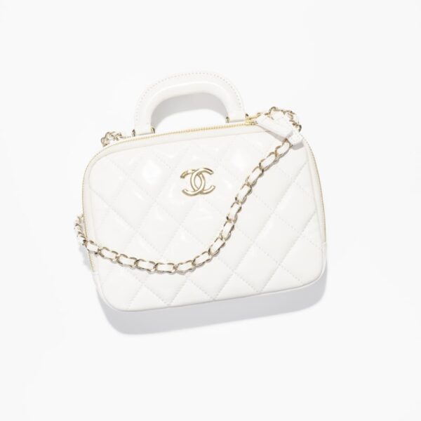 DIMENSIONS 7.8 × 7.4 × 2.3 in (21 x 18 x 6 cm) Shiny Calfskin, Calfskin & Gold-Tone Metal White & Black Ref. AS3980 B16652 NY081