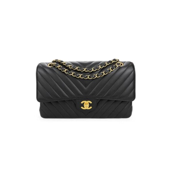 15.5 x 25.5 x 6.5 cm (6.1 x 10 x 2.6 in) Lambskin & Gold Metal Black [embed]https://youtu.be/YDyGJB1QgmY[/embed]