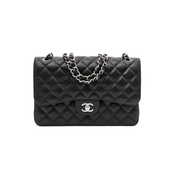 CHANEL LARGE CLASSIC HANDBAG Grained Calfskin & Silver Metal