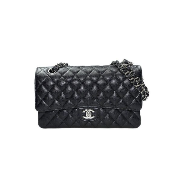 CHANEL CLASSIC HANDBAG Grained Calfskin & Silver Metal