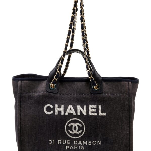 Materials and Details Exterior: Mixed fabric (cotton and linen feel) with calfskin trim Lining: Durable textile lining Handles: Double short leather handles with an adjustable long metal chain shoulder strap for crossbody, shoulder, or hand carry Metallic Hardware: Gold or light gold electroplated hardware adds a touch of CHANEL's signature sophistication Closing: Magnetic top closure or zipper (varies slightly between vintages)