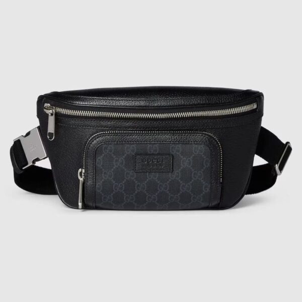 A selection of bags, including mini cross-body bags, briefcases and totes have been reshaped with functional details. Crafted from black leather and GG Supreme canvas, this belt bag features zip pockets. A Gucci Made in Italy leather tag completes the design as an elegant logo touch. Black leather Black GG Supreme canvas trim Cotton linen...