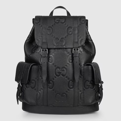 The all-black jumbo GG design returns for Pre-Fall 2023 atop a selection of leather luggage pieces. A reinterpretation of Guccio Gucci’s initials, the motif is an evergreen of the House that appears prominently in maxi size for an eye-catching logo feel. This backpack in the emblematic leather features multiple pockets and easy wear shoulder straps....