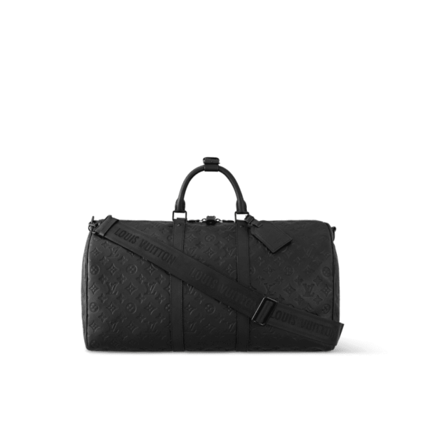 A Louis Vuitton classic, the Keepall Bandoulière 50 bag is reimagined in Monogram Shadow leather with an all-over embossed Monogram pattern. Matte black hardware complements the minimalist design. Created in the 1930s as the original soft travel bag, the Keepall remains elegant today, its cabin size perfect for short trips. 50 x 29 x 23...
