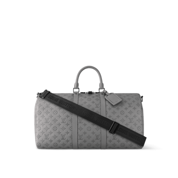 Louis Vuitton’s classic Keepall gets a contemporary new look with Monogram Shadow leather in a sophisticated shade of gray. Soft, supple calf leather is embossed with the House’s historic Monogram pattern for a refined signature touch. A large-capacity bag, perfect for short trips or as a carry-on. 50 x 29 x 23 cm (length x height...