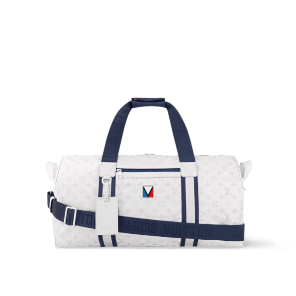 Part of the 37th America’s Cup collection, the Keepall Sport bag is made from Monogram Storm canvas, a water-resistant canvas with subtle Monogram embossing. The sporty colorway, aqua-zips for protection against moisture, and the LV fast-release buckle, all evoke the maritime world of the America’s Cup. A removable strap and top handles give carry options....