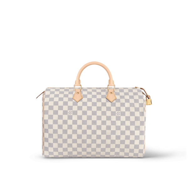 Crafted from feminine Damier Azur canvas, the Speedy 35 is a stylish handbag for both travel and daily use. Launched in 1930 as the “Express” and inspired by that era’s rapid transit, today’s updated Speedy remains a timeless House icon, with its unmistakable silhouette, rolled leather handles and engraved, signature padlock. 13.8 x 9.1 x...