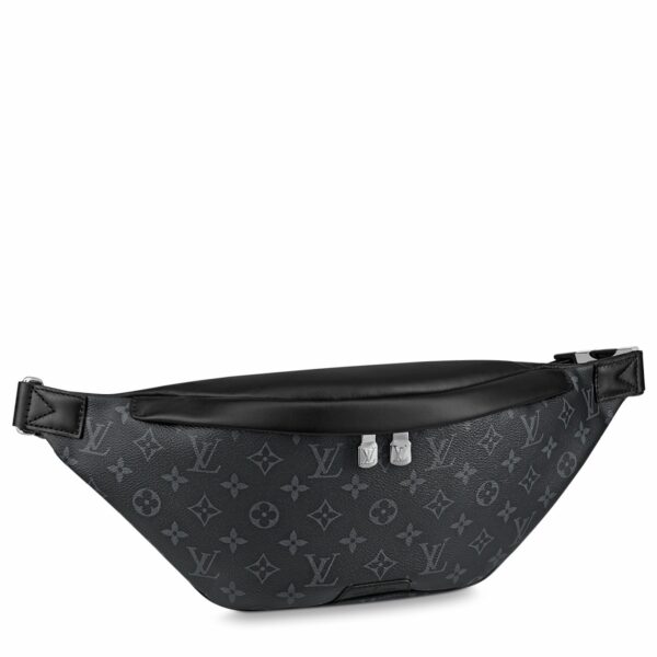 Crafted from Monogram Eclipse canvas, the Discovery bumbag offers the ideal mix of casual chic and modern functionality. With a body-friendly shape and adjustable belt, it can be worn around the waist, over the shoulder or slung stylishly across the chest. Zipped pockets, front and back, provide easy access to phone, cards and keys. 17.3...