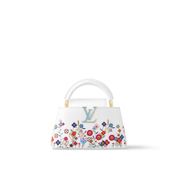The Capucines East-West Mini is playfully reimagined as part of the re-edition of the Louis Vuitton x Murakami collection to make an elegant statement. Printed and emobossed on cowhide leather, the House’s iconic Monogram Flowers are vibrantly reimagined in the Japanese artist’s vernacular superflat style, while a fresh blue shade adds a pop of color...
