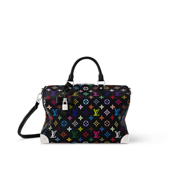 The Speedy Soft 30 makes an impact in supple coated canvas featuring an allover Monogram print in a vibrant rainbow palette as part of the re-edition of the Louis Vuitton x Murakami collection. The two Toron top handles and coordinating removable shoulder strap are crafted from tone-on-tone calf leather. Metallic corners recall detailing on the...