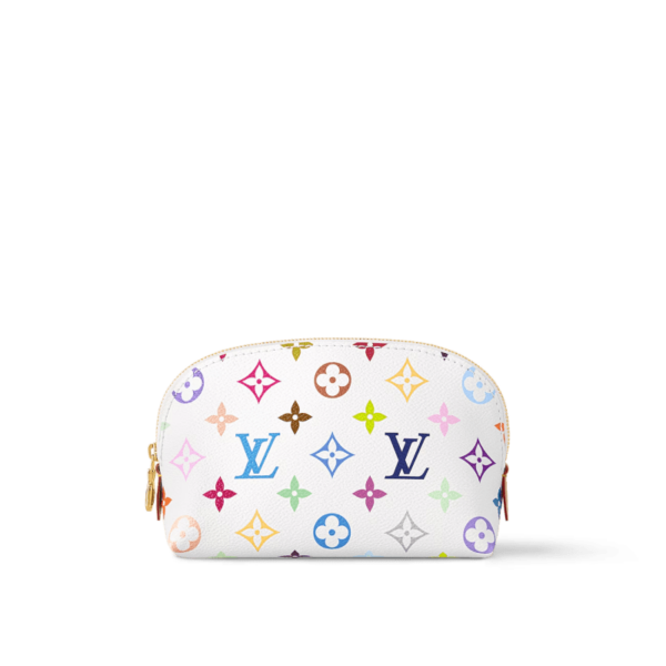 Colorful and compact, this essential Cosmetic Pouch PM is part of the celebratory cross-category Louis Vuitton x Murakami collaboration. Crafted from Monogram coated canvas, the House’s iconic signature is revisited in the playful rainbow tones of the world-renowned artist’s work. It is fastened with a golden zipper and finished with a practical washable lining complete...
