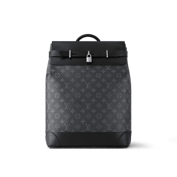 Inspired by the historic Louis Vuitton steamer bag, this Steamer Backpack in Monogram Eclipse canvas with its smart new key shape has a fashion-forward vintage feel. The House craftsmanship is evident in the rounded leather corners and ultra-comfortable leather straps. 32 x 45 x 16 cm (Depth x Height x Width) 2 leather shoulder straps Flap,...
