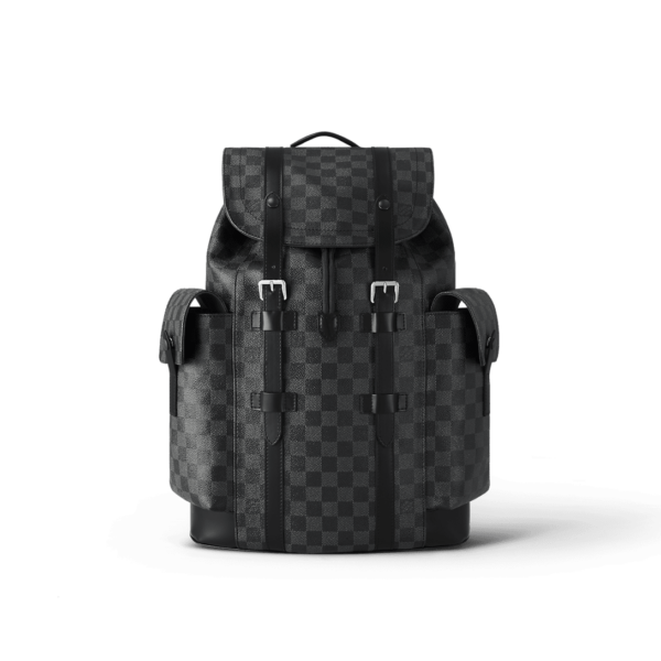A visually powerful everyday bag with the vigor of the outdoors, the versatile Christopher MM comes with a roomy interior. An attractive style marked by good taste. 38 x 44 x 21 cm (length x height x width ) Damier Graphite canvas body Adjustable shoulder straps Cowhide leather trim Silver color metallic pieces Flap opening Press...