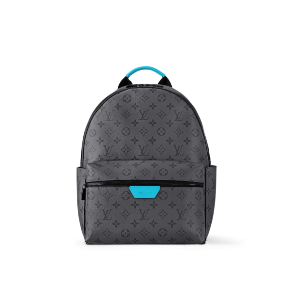 The Discovery Backpack PM is made from Monogram Eclipse Reverse canvas with its black-and-gray Monogram. The motif is livened up with turquoise on the leather label on the front pocket, around the zipper, and on the top handle. Its zipped front pocket and two open side pockets make this is a great everyday bag. 11.4...