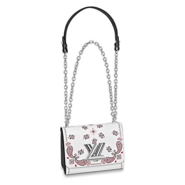 Louis Vuitton reinvents the flowers and arabesques of classic paisley on this Twist PM handbag. Printed on the supple Epi leather, the bandana-inspired pattern complements the bag’s classic lines. The silver-color LV twist-lock opening and sliding chain anchor the bag in glamourous Twist territory. Detailed Features 7.48 x 5.91 x 3.54 inches / 19 x...