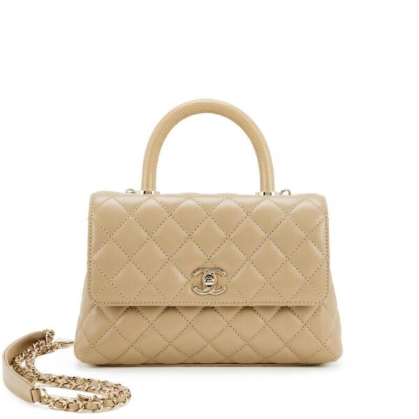 Chanel Beige Quilted Caviar Mini Coco Top Handle Pale Gold Hardware