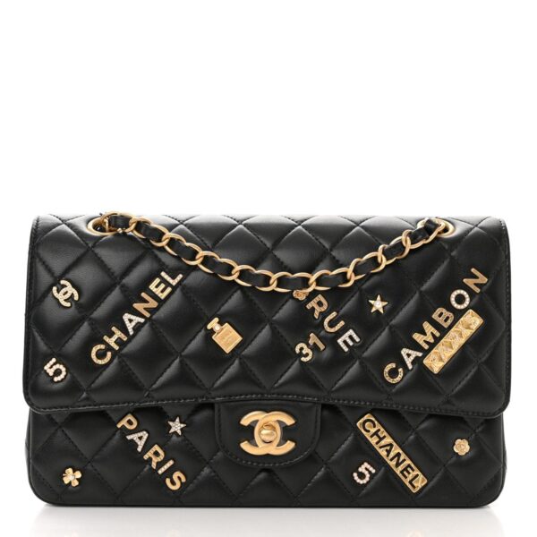 Chanel Lambskin Quilted Medium Rue Cambon Charms Double Flap Black