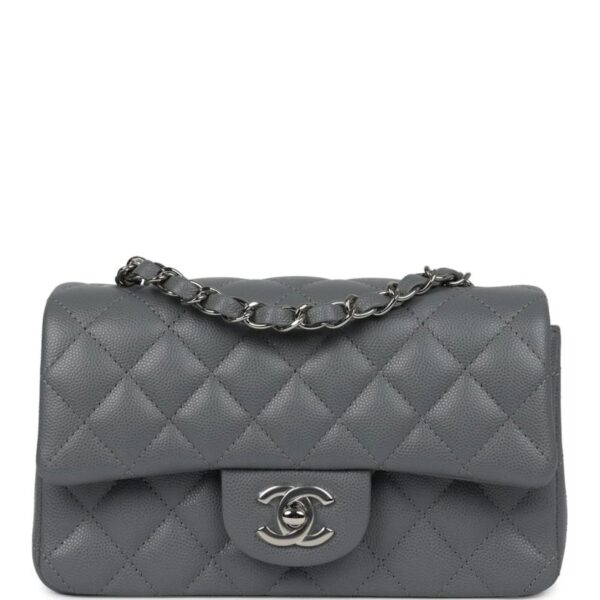 Chanel Mini Rectangular Flap Bag Dark Grey Caviar Silver Hardware