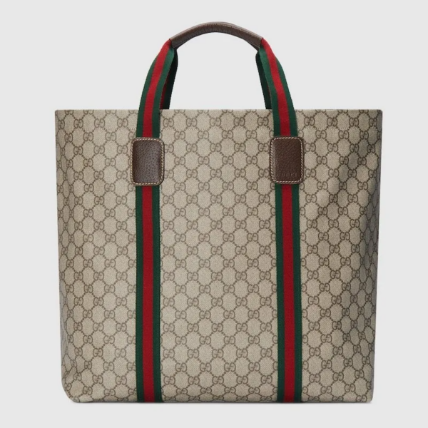 The GG Supreme Tender canvas, with its soft material and durable characteristics, lends itself well to the men’s accessories line, adding a modern feel to established House designs. The emblematic green and red Web further enhances this tote bag. Beige and ebony GG Supreme Tender canvas Green and red Web grosgrain Nylon lining 1 zip...