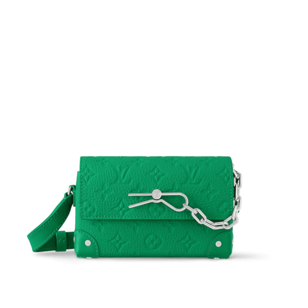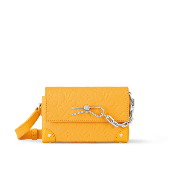 Inspired by the House’s vintage Steamer Trunk, the Steamer Wearable Wallet is fashioned from Taurillon cowhide leather in a bold summery colorway. Instantly recognizable by its pin and chain, the same found on the Streamer, it features an inside zipped pocket and magnetic closure to keep belongings secure. 7.1 x 4.3 x 2.6 inches/18 x 11...