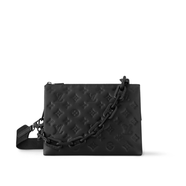 From the Black Out collection, this small Coussin bag is crafted from fine matte leather with embossed Monogram motif, hardware and a removable, chunky LV chain. The spacious interior is perfect for storing your daily necessities, and the zipper closure allows for secure storage. 26 x 20 x 12 cm (length x height x width) Matte lambskin...