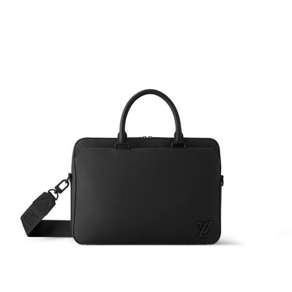 This Pilot cowhide briefcase combines modern design with practical functions. The inner pockets and compartments are opened and closed with magnetic buckles, making it easy to take out and put your belongings. The beveled design of the front pocket and the LV letters in the same color show the style of the LV Aerogram series....