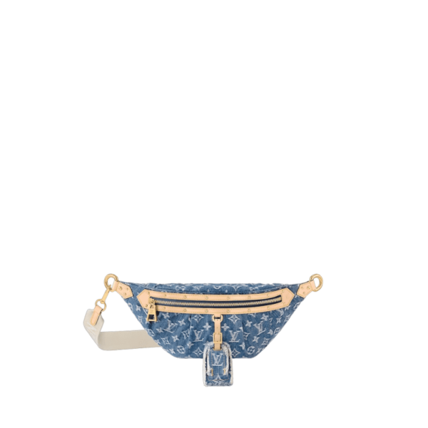 Made from Monogram Denim, the High Rise bumbag is trimmed with natural leather. Notably around the zipper, where the cowhide is adorned with golden studs. A removable name tag, also in distressed Monogram Denim, adds a distinctive touch. The removable and adjustable textile strap gives carry options. 15 x 6.3 x 3.1 inches 38 x 16...