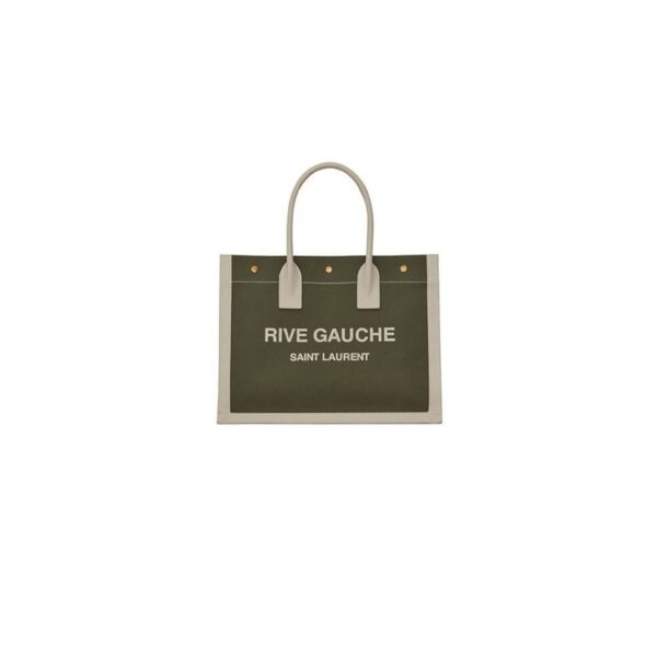 RIVE GAUCHE SMALL TOTE BAG IN LINEN AND LEATHER