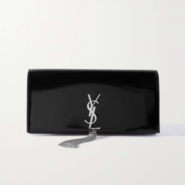SAINT LAURENT Kate glossed-leather clutch