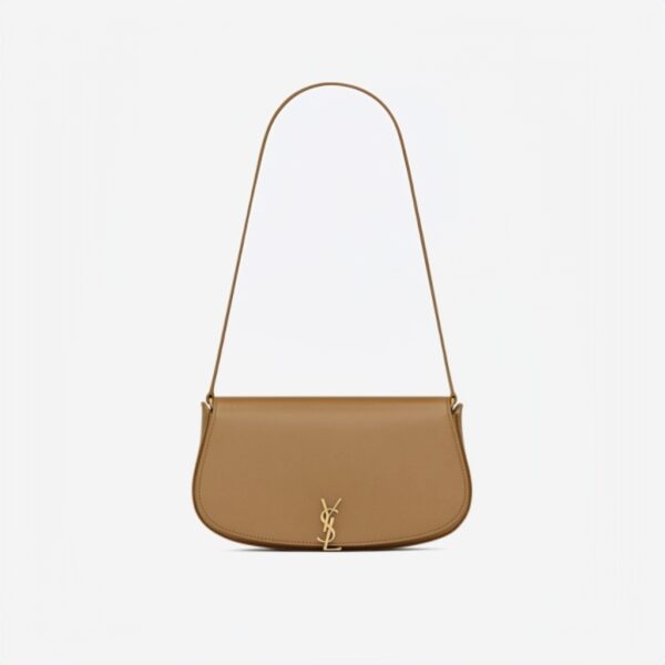 Saint Laurent shoulder bag in calfskin leather Shoulder strap, 9.4"L Flap top with YSL lift clasp closure Exterior, one slip pocket under flap Interior, one slip pocket Bronze hardware Approx. 4.3"H x 8.2"W x 1.7"D Made in Italy