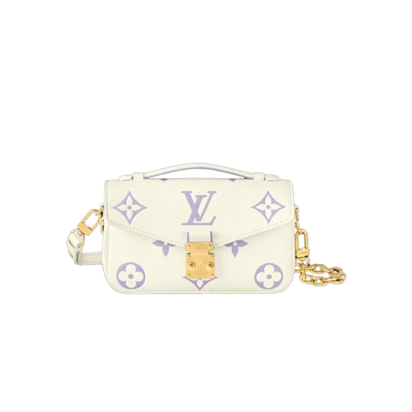 Part of the Milky Way capsule, the two-color Monogram Empreinte leather of this Pochette Métis East West handbag features a luminous off-white base with the Monogram motif embossed and then printed on the leather in a muted pastel tone. The Pochette Métis has a leather handle, a removable chain, and a detachable strap for carry...